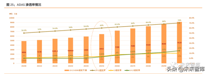 2. ADAS:2025 年渗透率有望达到 67%,ADAS 的渗透率提升带动汽车半导体量价齐升