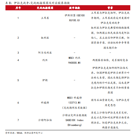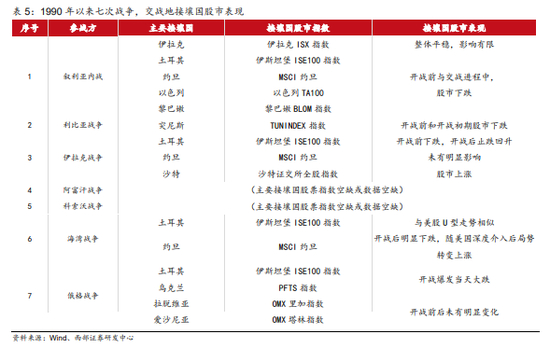 1990年以来七次战争,多数发生在中东地区。中东地区的各国关系错综复杂,因此历次战争期间,交战地接壤国的股市并未出现一致性的下跌表现。