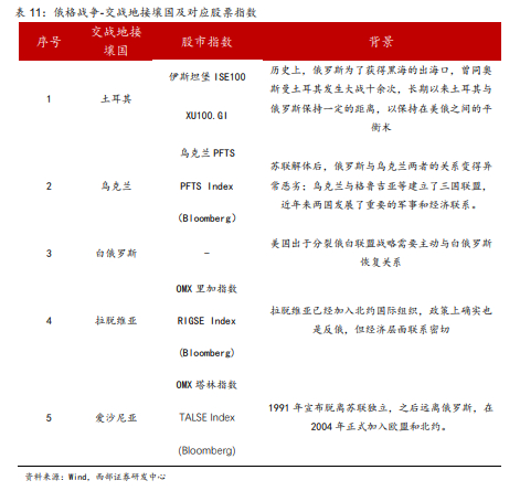 二是接壤国股市涨跌与主要交战国关系亲疏与否的关联度并不大。我们按照与交战国双方的亲疏关系进行划分,来看接壤国股市表现,发现并未呈现出规律性特征。其中一个重要因素在于即使在政治上关系相对恶劣,但由于地区紧邻,经济层面关系仍然相对紧密。