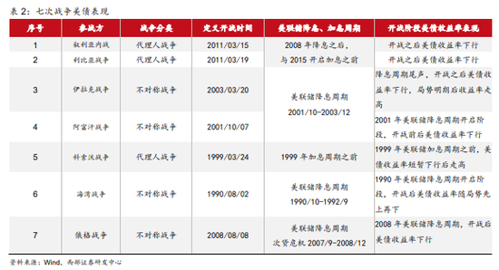 1990年以来七次战争期间,美债收益率长期走势与美联储周期基本一致。