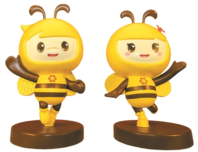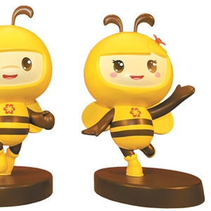仔细看,这对蜜蜂的每一个细节都有寓意。头部是对话框的造型,代表洽谈交流、贸易合作。触角代表天线,象征中国与世界互联互通、互利共赢。徐兵还特别提到“好妮”头上的木棉花是广州的市花,又被称为“英雄花”,代表广交会的举办地,也代表广交会幕后默默奉献的无名英雄。