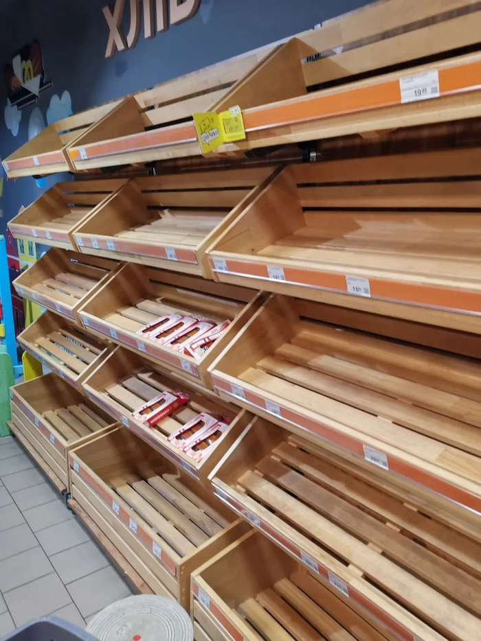 记者的朋友打电话来,说有的超市关门了,尚在营业的超市人满为患,都在抢购物资。记者前往基辅市内药店发现,居民在排队囤积药品;超市内物资尚且充足,但有的货架已空无一物。