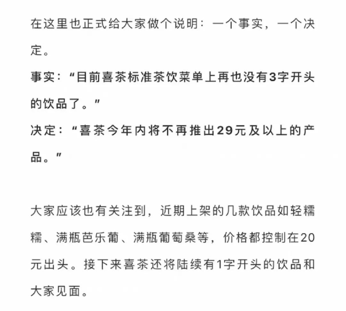 喜茶告别了30元价格带。