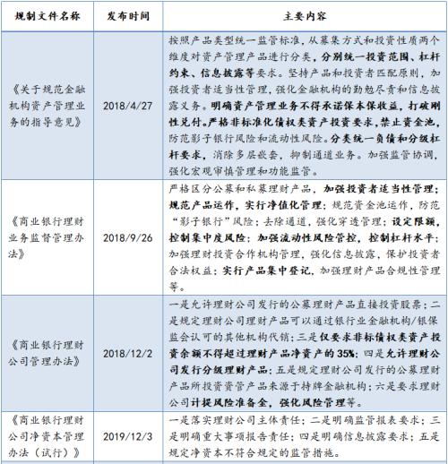 表1:2018年以来监管发布的重要资管业务和银行理财相关管理办法