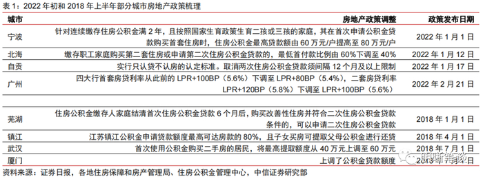近期多地房地产政策出现调整,后续相关政策可能还会出台,或将进一步引发市场对宽信用的预期。2021年四季度货币政策执行报告删除了“保持房地产金融政策的连续性、一致性、稳定性”,同时增加了“更好满足购房者合理住房需求,促进房地产市场健康发展和良性循环”的内容,房地产政策存在宽松的空间。近期更多城市出台了放松房地产的相关政策,从公积金贷款政策放松到房贷利率下调和首套房首付比下调等。相比2018年上半年稳增长政策逐步发力,也是从这些方面逐步因城施策、边际调整。预计后续会有更多城市出台房地产宽松政策。