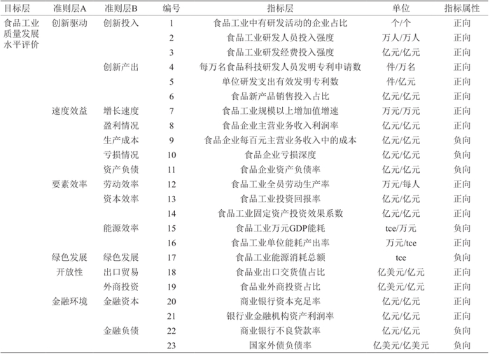 表 1 食品工业高质量发展评价指标体系