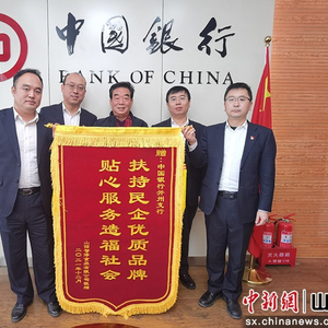 山西智泽食品有限公司为中国银行太原并州赠送旌旗。中国银行山西省分行供图