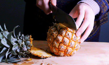 香水小菠萝本身就皮薄刺少,如果您觉得削皮麻烦,建议您用菜刀刮掉外边毛刺,对半切成四股,像西瓜一样直接啃着吃就好。