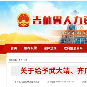 日前,中国吉林网从吉林省人力资源和社会保障厅了解到,《关于给予武大靖、齐广璞同志记大功的公示》发布。