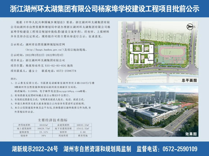 2月22日,位于湖州南太湖新区的杨家埠学校发布规划批前公示。