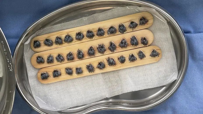 将提取分离好的毛囊,逐根植入已设计好的植发受区。