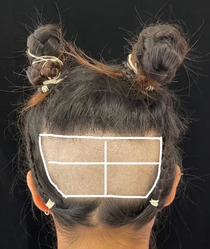 通常从后枕部提取毛囊,首选画好需要提取毛囊的区域,再初步观察并计数毛囊密度,预估可提取的毛囊数目。