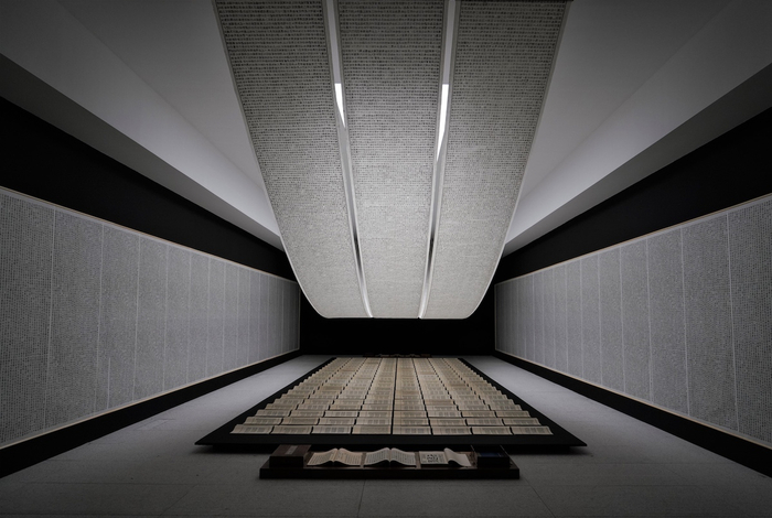 此次展览以徐冰文字语言和艺术语言为核心线索,展现作品中的思想和学术理论。七十余组上世纪80年代以来的作品分布在美术馆一层和三层,版画、装置、文献记录、手稿、影像、纪录片等展现其艺术的多元和丰富。