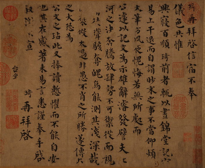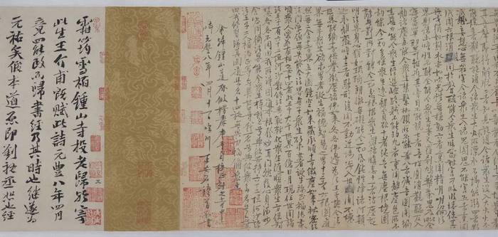 展览展示唐怀仁《集圣教序》、宋苏轼《书尺牍》、明董其昌《临褚遂良兰亭叙》、清王杰《临书谱》等总计十六件古代书法珍品,揭示历代书法发展的历史脉络。新一期“巨幅书画”由北魏写本《华严经》领衔,包括元胡廷晖 《蓬莱仙会图》、明蓝瑛《画雪景》、清罗廷禧《画百二十寿图》等五件作品。