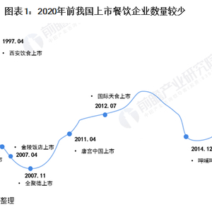我国餐饮行业最早上市的企业可追溯至1997年4月上市的西安饮食,尽管餐饮企业的早有企业上市,但严格的市场监管以及餐饮企业自身收入不好确认等问题一直制约着行业内企业上市步伐。