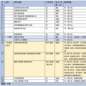 在本次被纳入医保的16项辅助生殖项目中,胚胎单基因病诊断、染色体疾病的植入前胚胎遗传学检测、囊胚/卵裂球/极体活检术3项三代试管婴儿技术分费用分别为5050元(每个胚胎)、3750元(每个胚胎)、1560元(每个胚胎/每个卵),合计10360元。