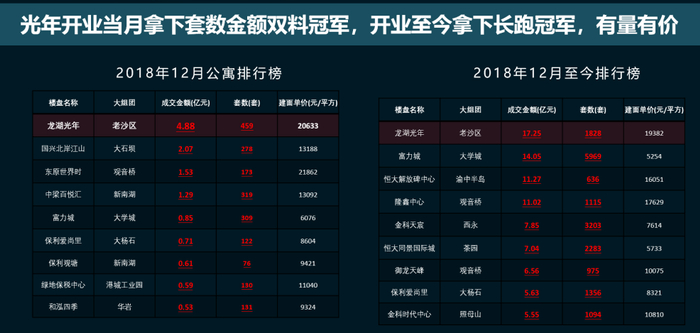 “每个TOD必将代表一个城市的中心。”铭腾机构董事长朱廷勇从重庆公寓、写字楼发展大数据分析。其中,公寓方面,重庆主城年均去化公寓物业约120万方,约2.4万套,龙湖光年开业当月拿下套数金额双料冠军,开业至今拿下长跑冠军。写字楼方面,重庆主城年均去化写字楼约48万方,龙湖光年去年写字楼合计成交1800套,成交量占全城总额的21%,由此可见,龙湖光年的虹吸辐射力。
