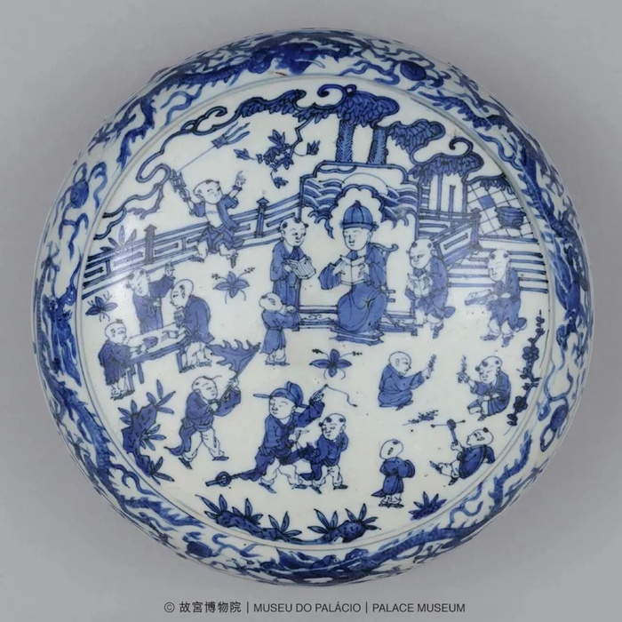 青花婴戏图盖盒