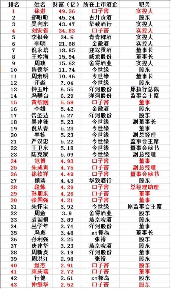 根据上市酒企2019年3月高管财富排行榜,徐进当时是上市酒企首富,这说明口子酒做得非常成功。