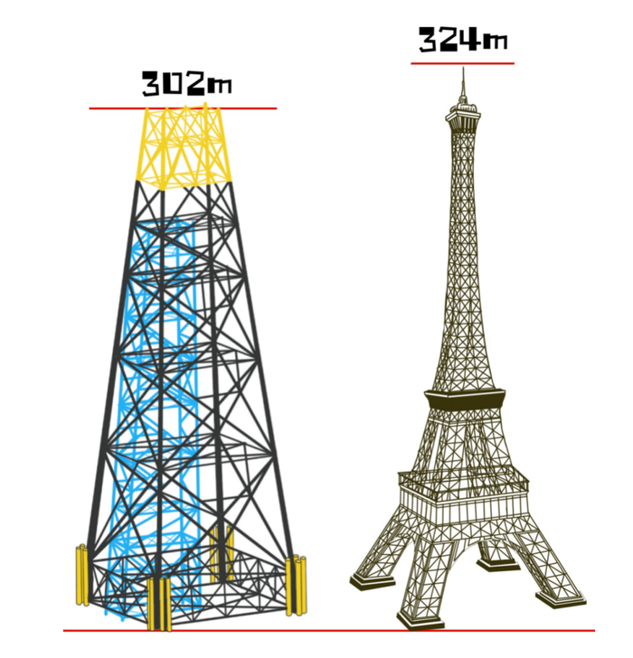 “海基一号”与法国埃菲尔铁塔铁塔高度对比。