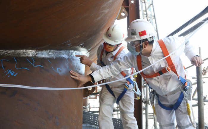 技术人员对“海基一号”进行焊接作业。