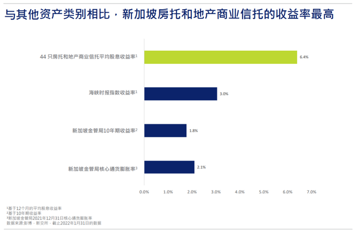 与其他资产类别相比,过去12个月(截至2021年12月31日)新加坡房托和地产商业信托的收益率表现最为强劲。此外,新加坡房托始终保持高股息收益率和较低波动率并存的双重优势。
