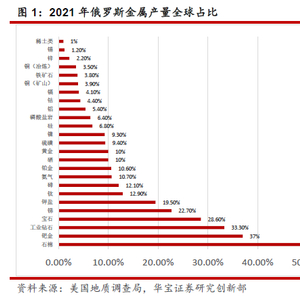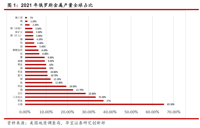 1.俄罗斯有色金属等大宗商品产量及出口比例在全球占比高