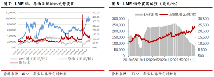俄乌局势使得避险情绪升温,短期对铜价影响有限,主要因俄罗斯的铜产销在全球市场占比均较小,有自给自足的能力,净出口量也较小。根据ICSG数据显示,2021年1-10月俄罗斯精炼铜产量77.5万吨,占全球精炼铜产量的3.7%;消费量34.2万吨,占全球消费量的1.5%;净产量盈余43.3万吨。但若OPEC随着国际油价上升的预期,铜油比支撑铜价中枢上行。