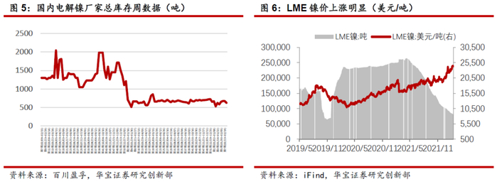 结合历史复盘,当前如果制裁发生,美国和欧盟等国家相关的企业购买Norilsk的精炼镍受到限制,由于当前镍现货市场紧缺,转而寻求中国为代表的替代市场来弥补缺口这一方法并不能提供足够的供给,在当下全球镍显性库存较低的格局下,进一步加剧市场对供应端的担忧。将利多LME镍价,从而带动国内镍价继续上涨。