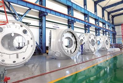 中国一重风电整机总装制造厂待装配的轮毂。陈建军摄(中经视觉)