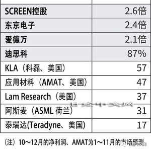 据SEMI预测,2021年和2022年全球半导体设备销售额将分别达到953和1013亿美元,同比增长34.1%和6.3% 。此外,从日经统计的9家全球半导体制造设备大型企业的最近一个财季业绩也可以看到,全员均实现同比利润增长。可以说,整个半导体设备行业皆迎来了前所未有的发展盛况。