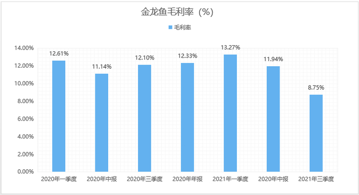 另外公司的产品毛利率太低,整体毛利率只有10%左右,2021年第三季度已经跌至8.75%。这就意味着,成本稍微波动公司就随时面临亏损。