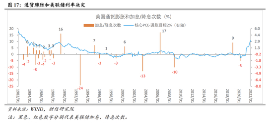 回顾1982年以来美联储加息/降息过程,加息/降息次数和幅度同时考虑了就业目标和通胀目标。如2000-2003年互联网泡沫破灭期间,美联储连续降息13次,降息幅度达到5.5个百分点;如果仅看通胀水平,在2%的目标附近,但期间失业率从3.9%提高到6.0%(图16-17),所以美联储持续降息,节奏是先快后慢,降息幅度是先大后小。