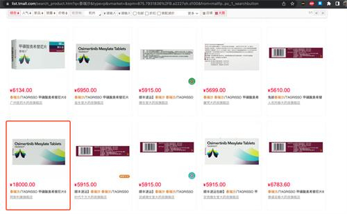 尽管在国家医保报销药品目录中,泰瑞沙的价格被标注为“保密”,但据电商平台上的售价数据来看,该药品的价格并不便宜。天猫平台上,多家药房的泰瑞沙售价普遍在5千至6千元之间,而阿斯利康旗舰店的售价高达1.8万元。泰瑞沙为医保乙类报销药品,即便是按比例报销,如若发生骗保行为,涉案金额同样较为可观。