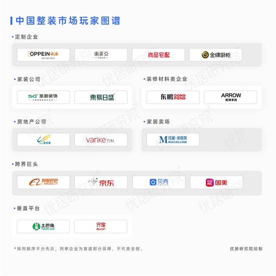 2021年被称作“整装元年”,以欧派、索菲亚、尚品宅配为首的定制派,以顾家、全友、皇朝为主的成品派纷纷布局整家定制。除传统家居企业外,以碧桂园、万科为代表的房地产公司,以贝壳、京东为首的跨界巨头,以红星美凯龙为主的家居卖场,先后涌入整家赛道,借助自身优势抢占市场,在这体量近万亿的行业中分一杯羹。
