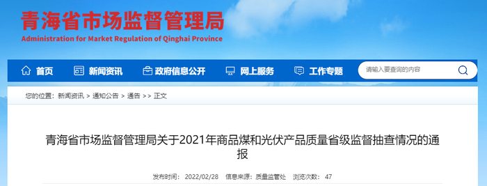 青海省市场监督管理局通报2021年商品煤产品质量省级监督抽查情况