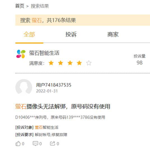 但与此同时,萤石网络的产品,也屡遭消费者投诉。