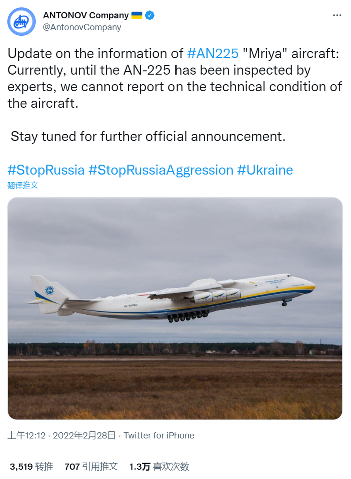 “世界最大飞机安-225被炸毁”最新进展