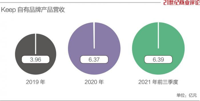2019年、2020年及2021年前三季度,Keep自有品牌产品的营收分别为3.96亿元人民币、6.37亿元、6.39亿元,为公司第一大收入来源,占总收入的比重一直在55%以上。