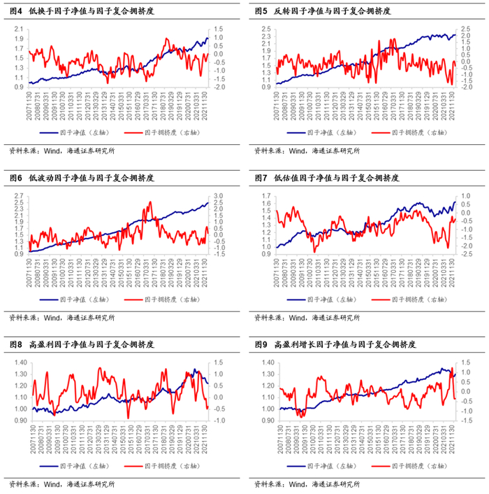 根据海通量化团队前期发布的专题报告《选股因子系列(四十二)——因子失效预警:因子拥挤》,我们使用估值价差、配对相关性、长期收益反转、因子波动率这四个指标度量因子拥挤程度。关于指标的详细计算方法与历史效果请参考对应专题报告。
