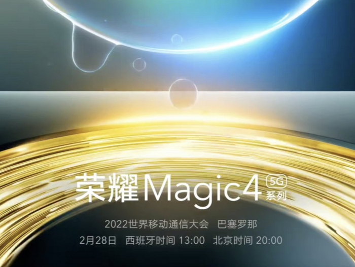新一代智慧旗舰荣耀Magic 4 系列将在巴塞罗那正式发布,包括荣耀Magic 4、荣耀Magic 4 Pro 和荣耀Magic 4 Pro+。