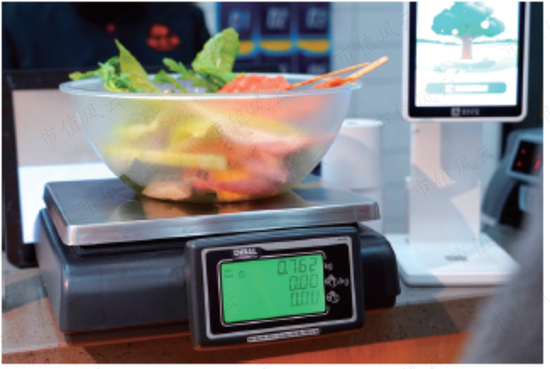 第二步,确认汤底,并对食材进行称重,然后结算付款。