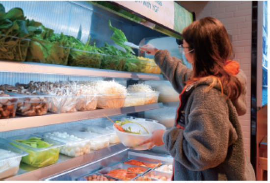 食材和汤底都是现成的,而且都是按照统一的标准制作,消费者只需要选择不同的食材和不同的汤底,然后进行自由的排列组合即可。这一点和中式火锅非常像。