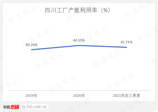 需要注意的是,四川那个工厂的产能利用率是比较低的:2019-2021年前三季度,四川工厂的产能利用率一直都只有40%左右,个别产品线的产能利用率甚至只有10%左右。