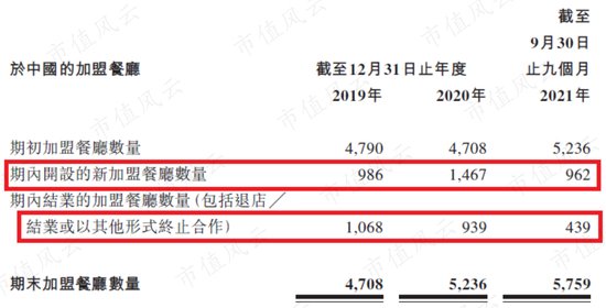 风云君注意到,每年公司都会增加近千家加盟店,与此同时也会关闭近千家加盟店。