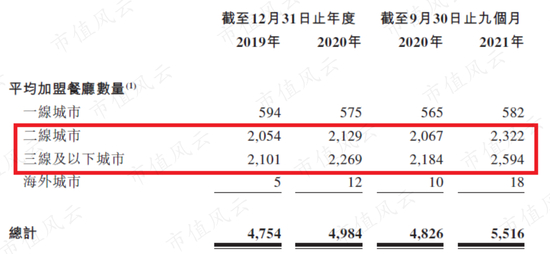 从地理上划分上,大部分加盟店是开在二、三、四线城市,一线城市反而较少。