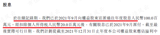 2021年9月,公司支付现金股息1个亿,其中2000万是所得税。由于杨家目前的持股比例非常集中,高达97%。所以这剩下的8000万人民币,几乎全进了杨家的腰包。这是非常明显的上市前突击分红。