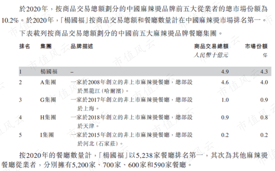 根据公司引用的弗若斯特沙利文数据,2020年按餐厅数量计算,杨国福麻辣烫是国内麻辣烫这个细分领域的第一。