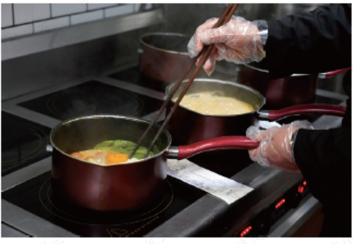 最后一步就是餐厅的厨房人员采用“单人单锅”的方式,将食材放进汤底中煮熟即可。