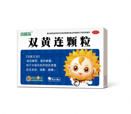 小葵花“双黄连颗粒”是双黄连里的儿童专用药,由黄芩、连翘、金银花等联合组成,具有提高免疫、清热解毒、表里双清、清除里热外热的功效,可用于小儿风热感冒引起的发热、咳嗽、咽痛。